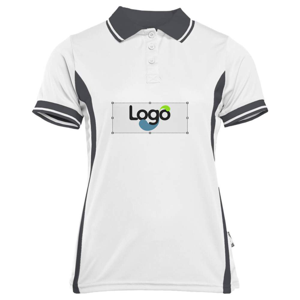 Women's sport polo made of quick dry polyester, offering effective sweat wicking. Its lightweight and breathable fabric ensures optimal comfort during your sporting activities. It features a velvet collar and an embroidered label for added comfort. The collar and sleeves are adorned with contrasting trims. This polo offers the possibility of customization with embroidery, allowing you to add your logo or design for a unique brand image.