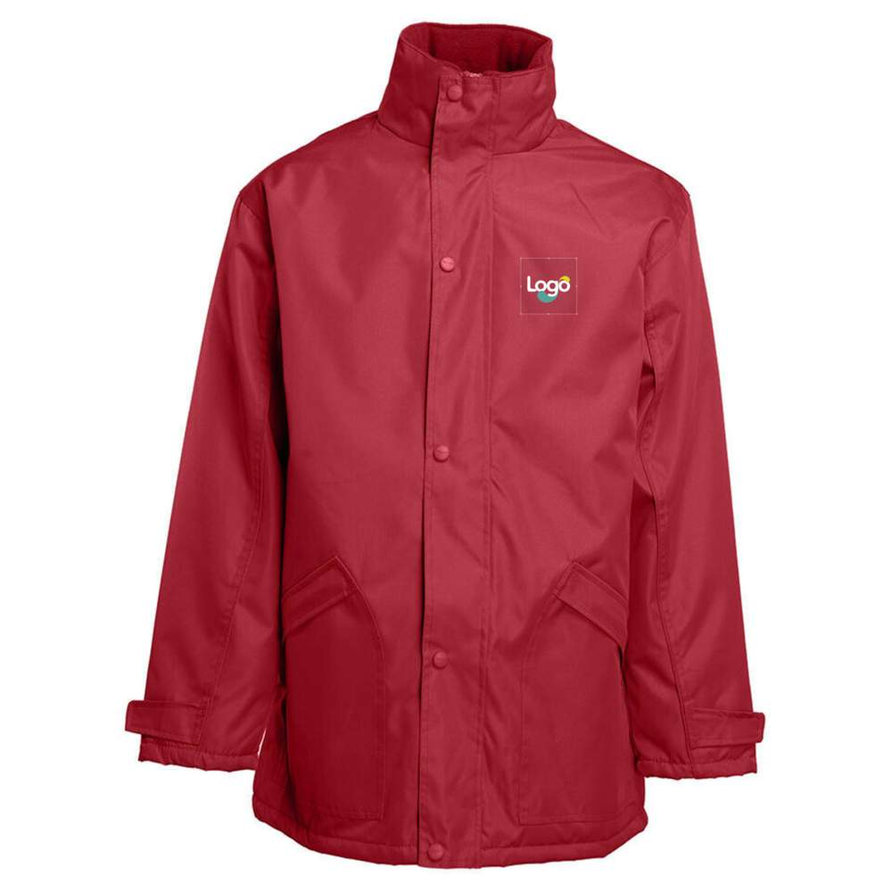 100% nylon oxford waterproof parka, offering effective protection against the elements. Its quilted polar fleece lining ensures optimal thermal comfort. The polar fleece-lined collar enhances insulation. The sleeves are equipped with self-fastening strips for a precise fit. It has two zippered exterior pockets for storing your personal items and two interior pockets for easy access. Access is provided for customization, allowing you to integrate your logo or your visual. This parka is designed to meet customization and branding needs.