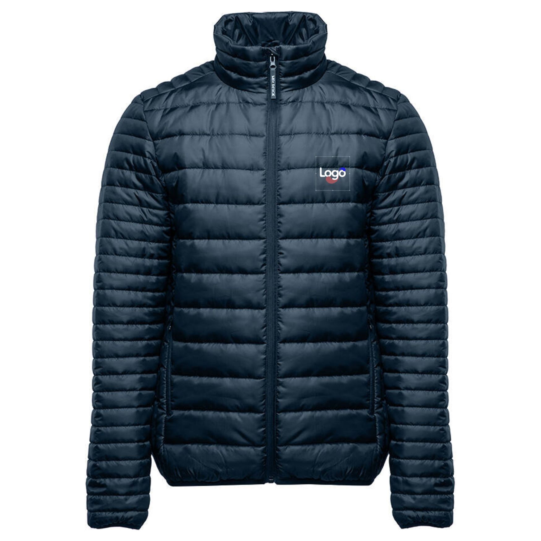 Men's jacket made from recycled polyester, offering warmth and lightness. It features a zip closure with pull tab, side pockets with plastic zippers, an inner storm flap, and an inner zip pocket. A chin guard ensures optimal comfort, while elasticated cuffs retain heat. The composition includes an outer layer made of 100% polyester 260T and a lining made of 100% recycled polyester. This jacket offers a perfect balance between performance and environmental respect. Possibility of customization with embroidery for a unique look.