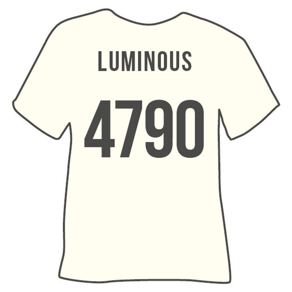 Adhesive luminescent cut flex. This material allows for markings visible in the dark on various textile, technical or other supports. It is composed of a polyurethane adhesive and a non-adhesive PET film. Transfer is done by thermobonding, respecting the specified temperature, pressure and time parameters.