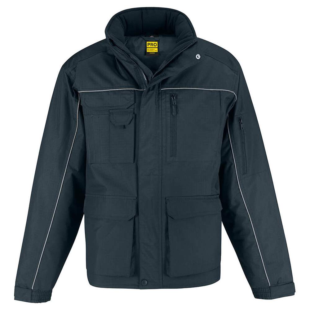 The Shelter pro jacket is a thick highly functional parka jacket, designed to provide comfort and protection. It features an ergonomic hood integrated into the collar, 12 multifunctional pockets for optimal storage, and a longer back for greater freedom of movement and increased protection. A reflective piping at the front and back improves visibility and safety. The rip-stop outer layer enhances resistance to abrasion and tears. It includes a smartphone pocket on the outside with hook-and-loop closure, 3 additional pen pockets, 2 double-entry pockets with side access to the fleece-lined handwarmer pockets, an internal wallet pocket and a pocket on the arm with zipper closure. Ergonomic zippers facilitate access, while adjustable cuffs with hook-and-loop flap closures ensure an optimal fit. The fabric is tested for all embroidery and printing techniques, allowing for easy customization.
