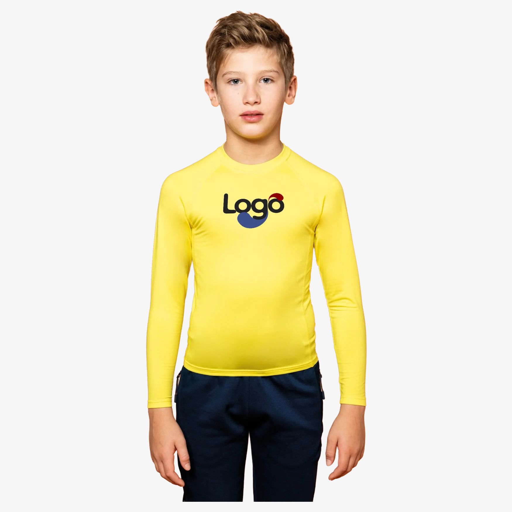 Double-layer sports long-sleeved t-shirt for children, designed to provide comfort and performance during sports activities. Its composition of 88% polyester and 12% elastane ensures quick drying and great freedom of movement. Round neck for optimal comfort. Careful finishes with covered stitches in the same tone and double needle at the bottom of the sleeves and the garment. This t-shirt is customizable, allowing the addition of your logo, your colors or any other visual of your choice.