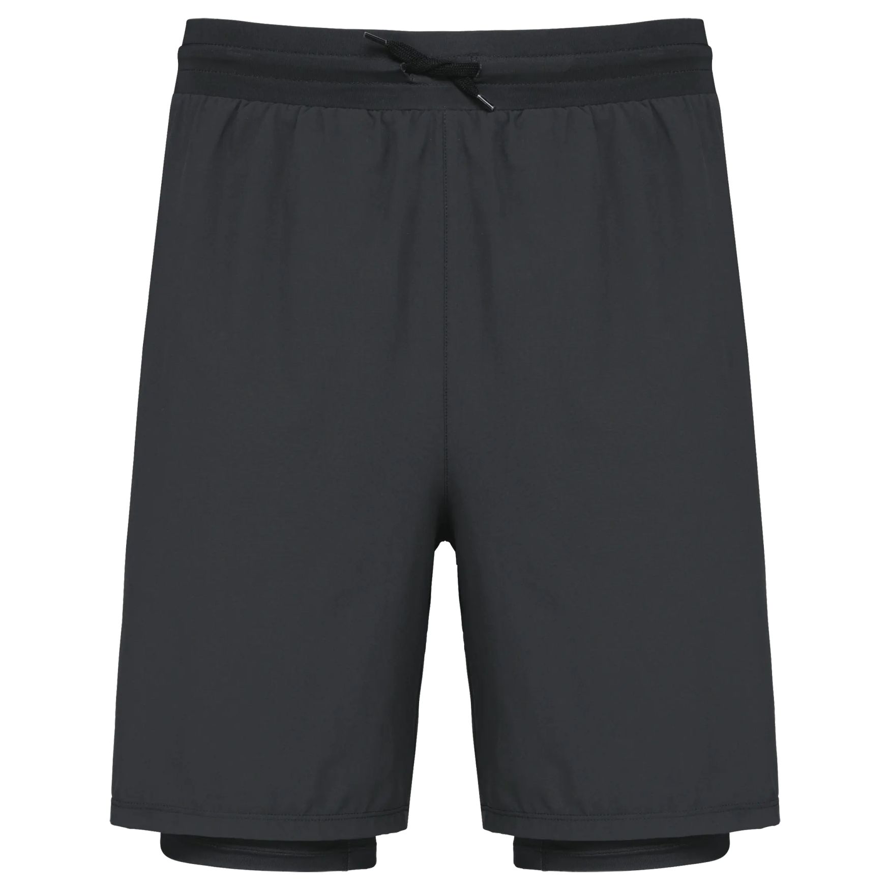 The 2 1 short with integrated under-short combines quick-drying fabric and antistatic treatment. Its flexible material facilitates movement. It includes two front pockets, one with a small jersey pocket, and side vents for ease. The elastic waistband with flat drawstring can be placed inside or outside thanks to a double eyelet. The ergonomic under-short includes inserts for increased comfort. The finish is made with double stitching. No brand label, only a size tag for customization.