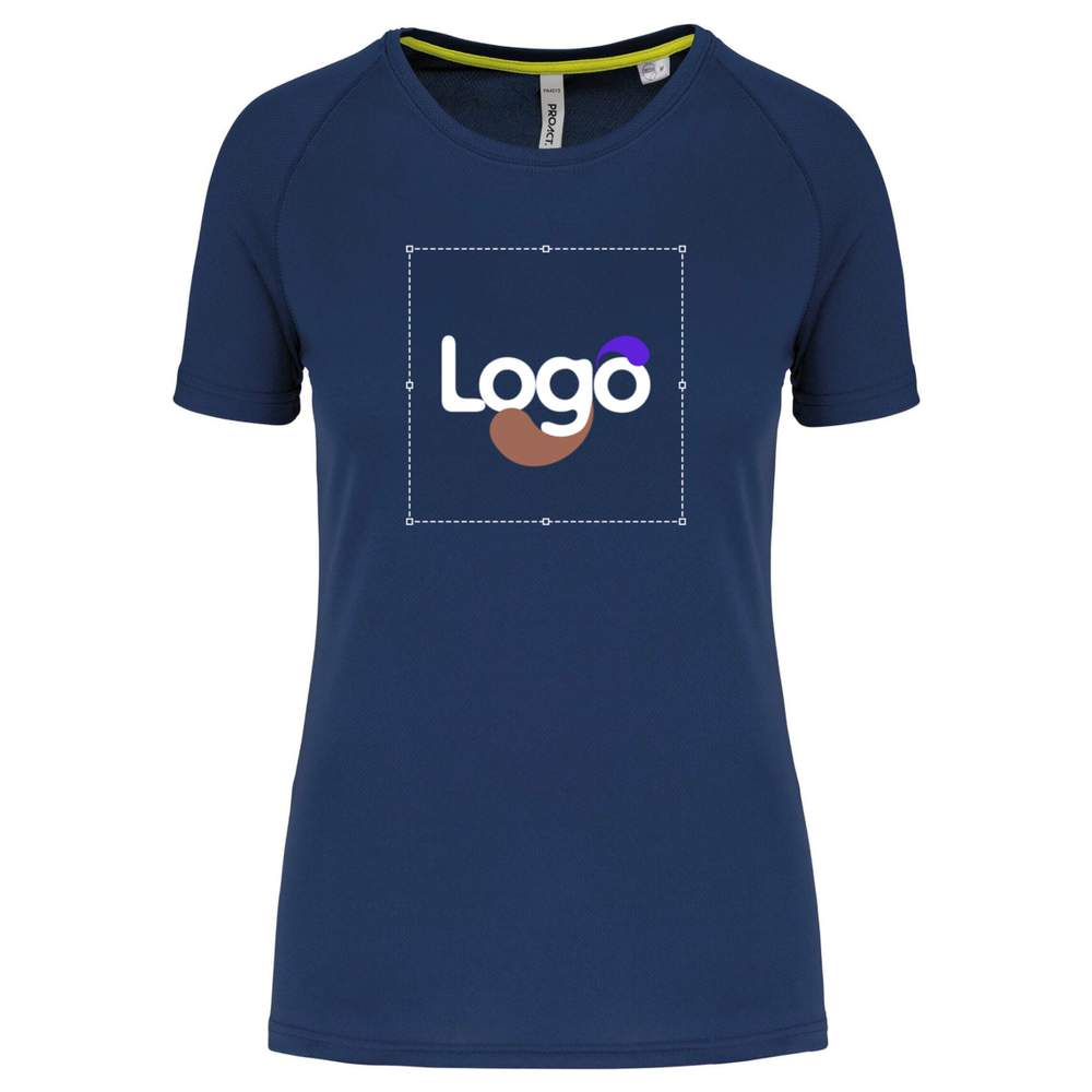 Women's Round Neck Recycled Sports T-Shirt pa4013 Personalization - Sporty navy