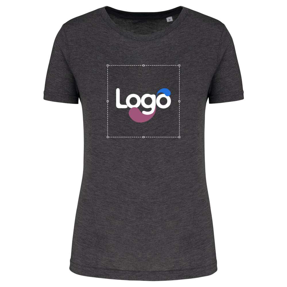 Women's sport t-shirt. Triblend jersey fabric. Anti-pill treatment. Round neckline. Straight cut. Matching shoulder-neckline-back-shoulder stripe. Double needle hem at sleeve and garment bottom. Tubular finish at cuff and bottom hem. No brand label on collar, only a size chip to facilitate customization. Composition: 50% polyester / 25% cotton / 25% viscose. This t-shirt is ideal for being customized according to your needs and desires.