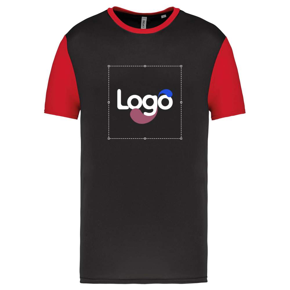 Adult short-sleeve sports t-shirt. Unisex and bicolor model. Interlock knit for optimal comfort. Classic straight cut. Contrasted round neckline with a band of cleanliness for better hold. Contrasted straight sleeves for a dynamic look. Double needle finishes at the bottom of sleeves and garment for increased durability. This t-shirt offers excellent breathability and great freedom of movement, ideal for your sports activities. Possibility of customization with your logo, visual or text for maximum visibility of your brand.