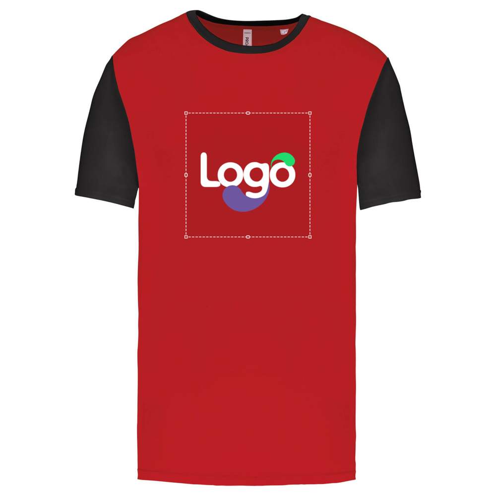 Adult short-sleeve sports t-shirt. Unisex and bicolor model. Interlock knit for optimal comfort. Classic straight cut. Contrasted round neckline with a band of cleanliness for better hold. Contrasted straight sleeves for a dynamic look. Double needle finishes at the bottom of sleeves and garment for increased durability. This t-shirt offers excellent breathability and great freedom of movement, ideal for your sports activities. Possibility of customization with your logo, visual or text for maximum visibility of your brand.