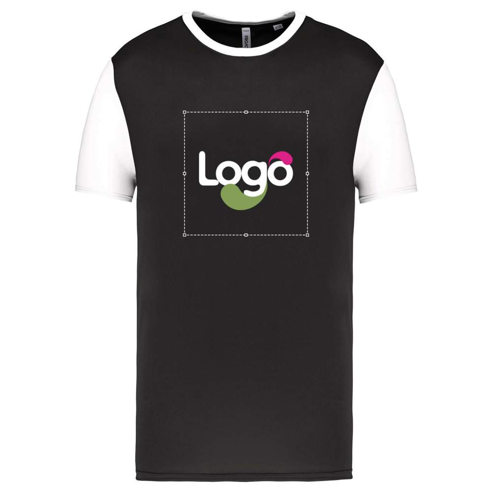 This bicolor short sleeve is specially designed for active children. Its straight cut and interlock knit offer comfort and freedom of movement. The round contrasting neckline and straight sleeves add a touch of style. Double needle finishes ensure increased durability. This garment is customizable to display your logo or visual, ideal for sports teams or promotional events.