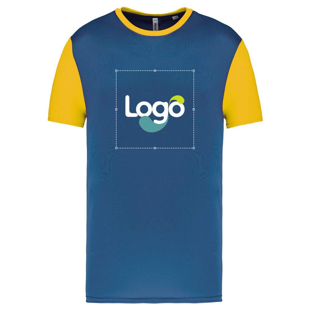 This bicolor short sleeve is specially designed for active children. Its straight cut and interlock knit offer comfort and freedom of movement. The round contrasting neckline and straight sleeves add a touch of style. Double needle finishes ensure increased durability. This garment is customizable to display your logo or visual, ideal for sports teams or promotional events.