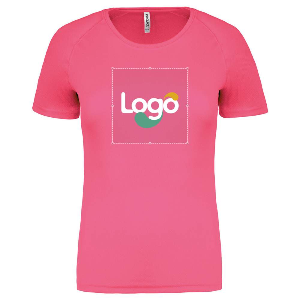 Woman's short-sleeved sports t-shirt pa439 customization - Fluorescent pink