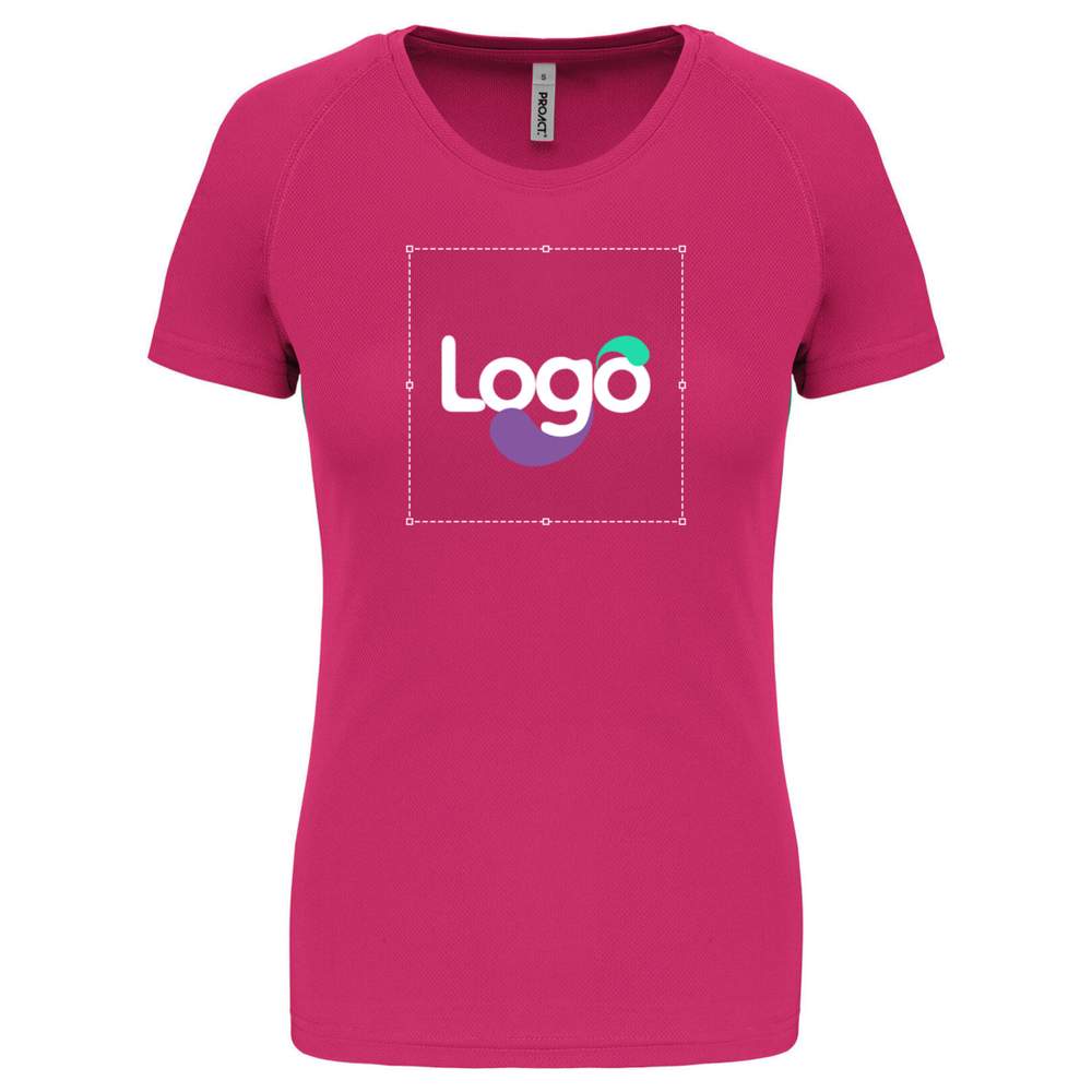 This short-sleeved sports t-shirt for women is made of 100% polyester, offering a lightweight and quick-drying fabric for optimal comfort during your sports activities. It features a round neckline with a clean edge to avoid irritations. The raglan sleeves and covered stitching ensure increased freedom of movement and enhanced durability. The double-needle hem at the neckline, sleeve ends, and garment bottom guarantee meticulous quality. This t-shirt is customizable, allowing you to add your logo, a visual, or any other graphic element for a unique brand image.