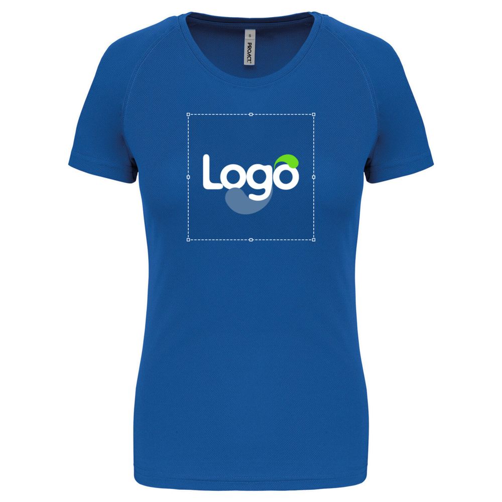 This short-sleeved sports t-shirt for women is made of 100% polyester, offering a lightweight and quick-drying fabric for optimal comfort during your sports activities. It features a round neckline with a clean edge to avoid irritations. The raglan sleeves and covered stitching ensure increased freedom of movement and enhanced durability. The double-needle hem at the neckline, sleeve ends, and garment bottom guarantee meticulous quality. This t-shirt is customizable, allowing you to add your logo, a visual, or any other graphic element for a unique brand image.
