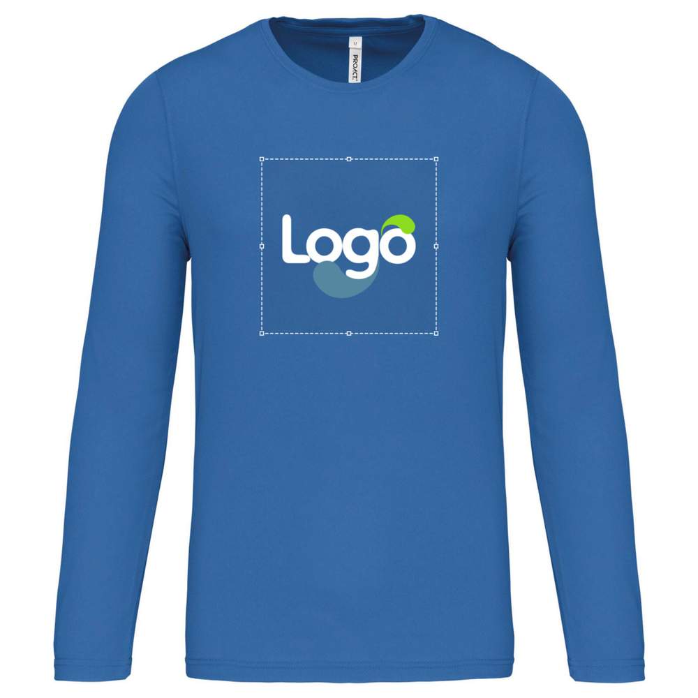 This long sleeve sport t-shirt for men is made of 100% polyester, offering optimal comfort and quick drying, ideal for the practice of various sporting activities. It has a round neckline with a clean strip and double-needle finishes at the neckline, armholes, cuffs, and hem of the garment. This round neckline polyester t-shirt is designed to offer excellent breathability and total freedom of movement. Its comfortable cut adapts to all morphologies. This t-shirt is customizable, allowing the addition of your logo or visual for effective communication during your sporting events or for team identification.