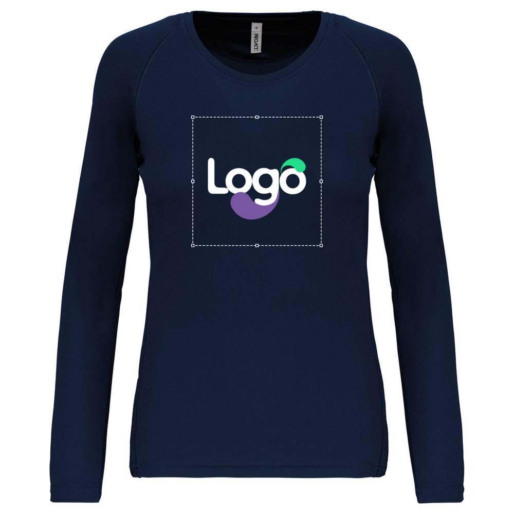 This long sleeve sport t-shirt for women is made of 100% polyester, offering a lightweight and quick-drying fabric for optimal comfort during your sports activities. It features a round neck with an integrated clean band, as well as raglan sleeves for increased freedom of movement. The armholes and cuts are reinforced with a coverstitch, ensuring increased durability. The careful finishes include a double needle at the neckline, sleeve hems, and garment hems. This t-shirt is also customizable, allowing you to add your logo or your visual for a unique touch.