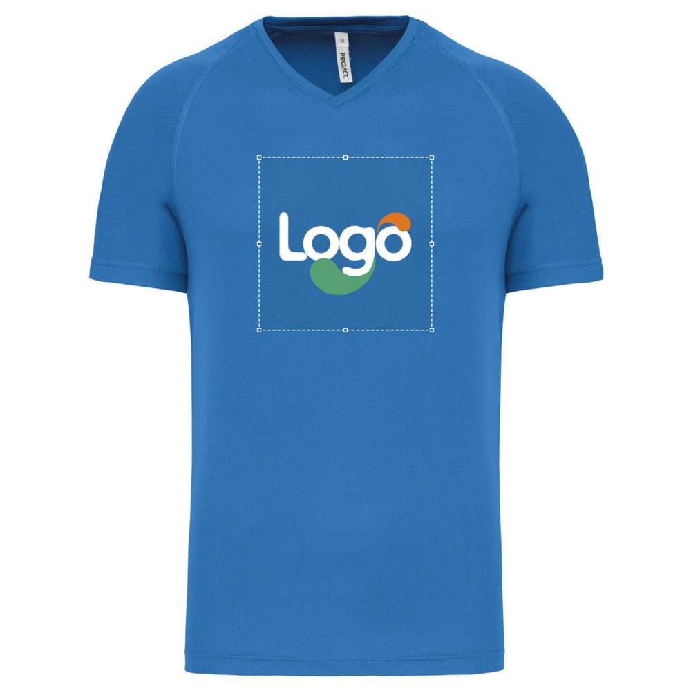 This short-sleeved v-neck sport t-shirt is designed to offer comfort and performance. Made of 100% polyester, it provides quick drying, ideal for your sports activities. The V-neck with a clean band offers optimal hold, while the raglan sleeves and coverstitches ensure increased freedom of movement. The double-stitch hem at the bottom of the sleeves and garment ensures enhanced durability. This t-shirt is also customizable, allowing you to add your logo or visual for a unique brand image.