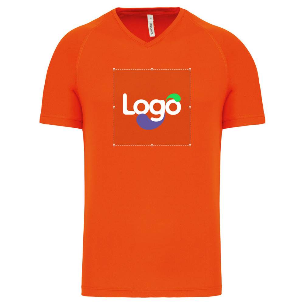 This short-sleeved v-neck sport t-shirt is designed to offer comfort and performance. Made of 100% polyester, it provides quick drying, ideal for your sports activities. The V-neck with a clean band offers optimal hold, while the raglan sleeves and coverstitches ensure increased freedom of movement. The double-stitch hem at the bottom of the sleeves and garment ensures enhanced durability. This t-shirt is also customizable, allowing you to add your logo or visual for a unique brand image.