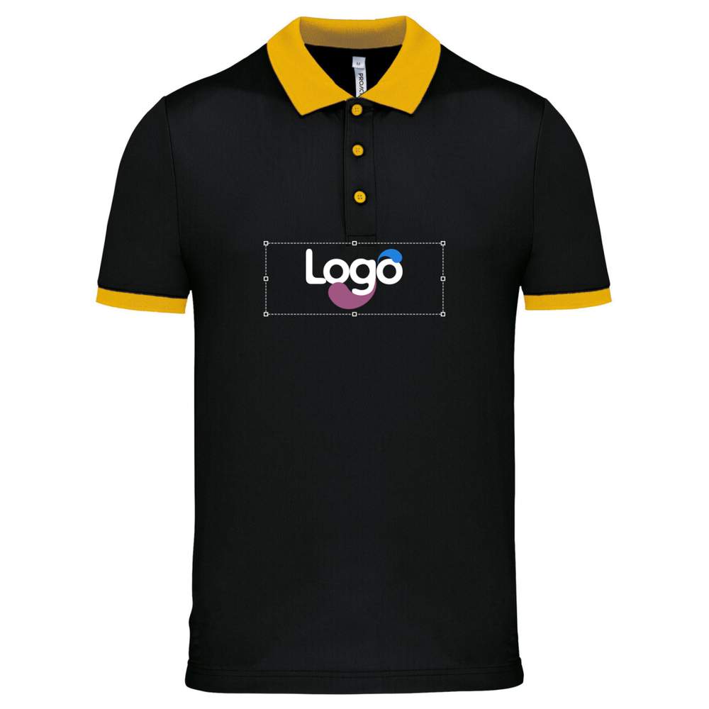 This performance polo for men is made of 100% polyester Cool Plus® pique knit, offering quick drying and optimal comfort. Its fitted cut and modern look make it an ideal garment for sports activities or professional events. The collar and cuffs with contrasting ribbing add a touch of elegance. It features a three-button placket with contrasting buttons and side slits for increased freedom of movement. This polo is also customizable with embroidery, allowing you to add your logo or visual for effective communication.