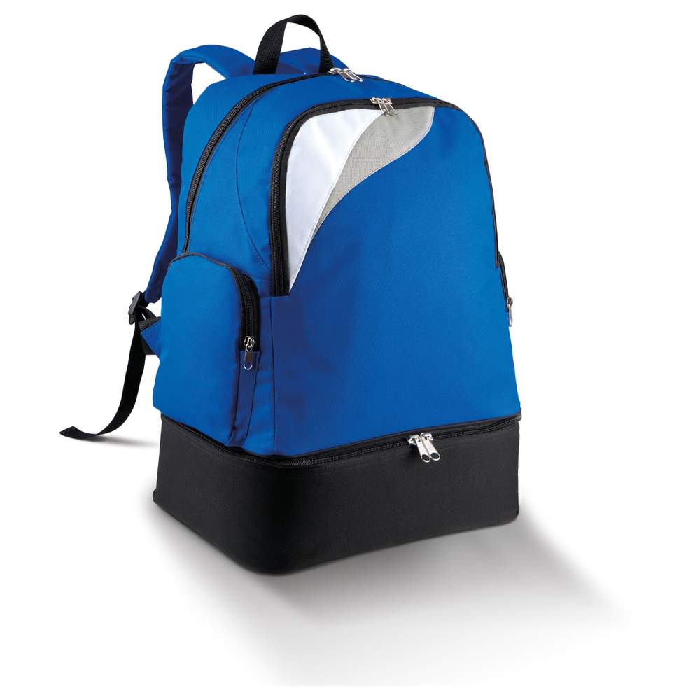 Multisport backpack designed for transporting sports equipment. Made of 600D polyester, offering good resistance to wear. Its structure includes a rigid base dedicated to the shoe compartment, providing increased protection. It features a large front zip pocket for quick access to personal items, as well as two side zip pockets for optimal organization. This backpack is suitable for various team sports and outdoor activities.