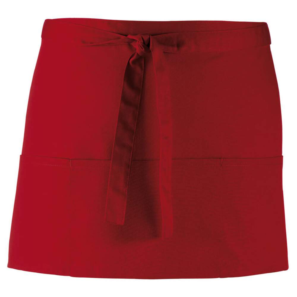 This short apron has three open pockets. The straps are in the continuity of the fabric of 90 cm. Width 60 cm, Length 33 cm. Composition: 65% polyester, 35% cotton (except denim color: 70% cotton, 30% twill polyester).