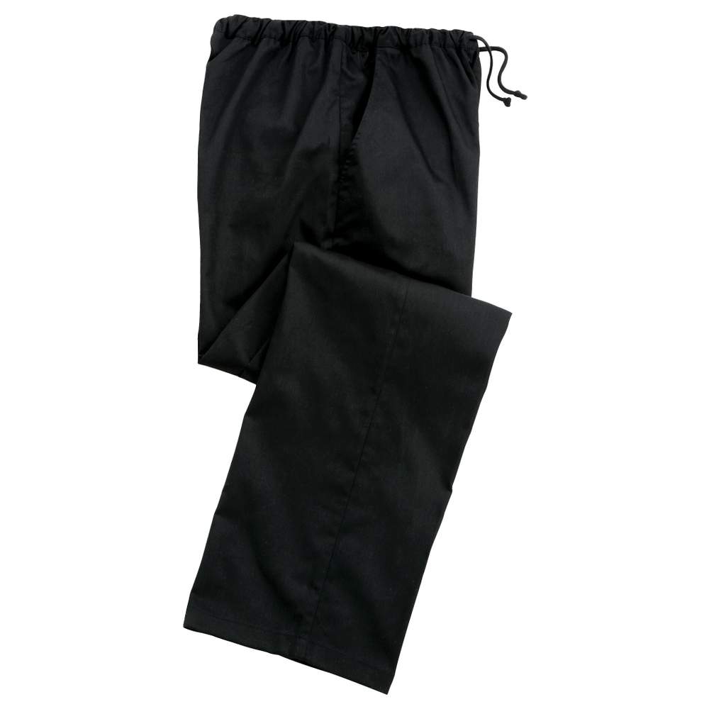 This unisex pant is designed to meet the needs of professional kitchen staff. It provides optimal comfort thanks to its elastic waist, making it easy to put on and take off. Its inseam length of 77 cm ensures adequate coverage. It is equipped with side pockets for easy access to small items and an adjustable drawstring for a personalized fit. Its composition of 65% polyester and 35% cotton offers a good balance between durability and comfort.