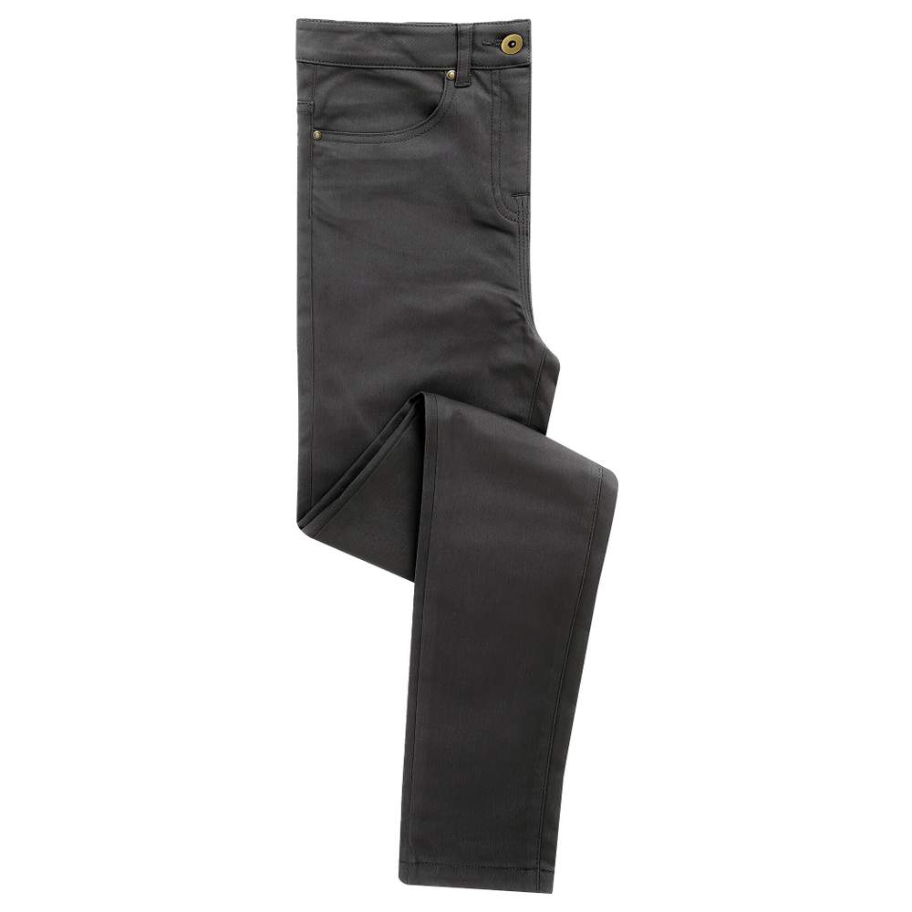 This slim fit women's chino pants offers optimal comfort thanks to its stretch fabric. It features two front pockets, rivet details, and two back patch pockets. Practical belt loops and YKK zip closure with metal button at the waist ensure a perfect fit. Its composition of polyester, cotton, and elastane provides exceptional durability and good resistance to washing. This model complements the men's style (reference PR560) and is available in two leg lengths: 79 cm and 86 cm. Possibility to customize this item with your logo or visual for effective communication.