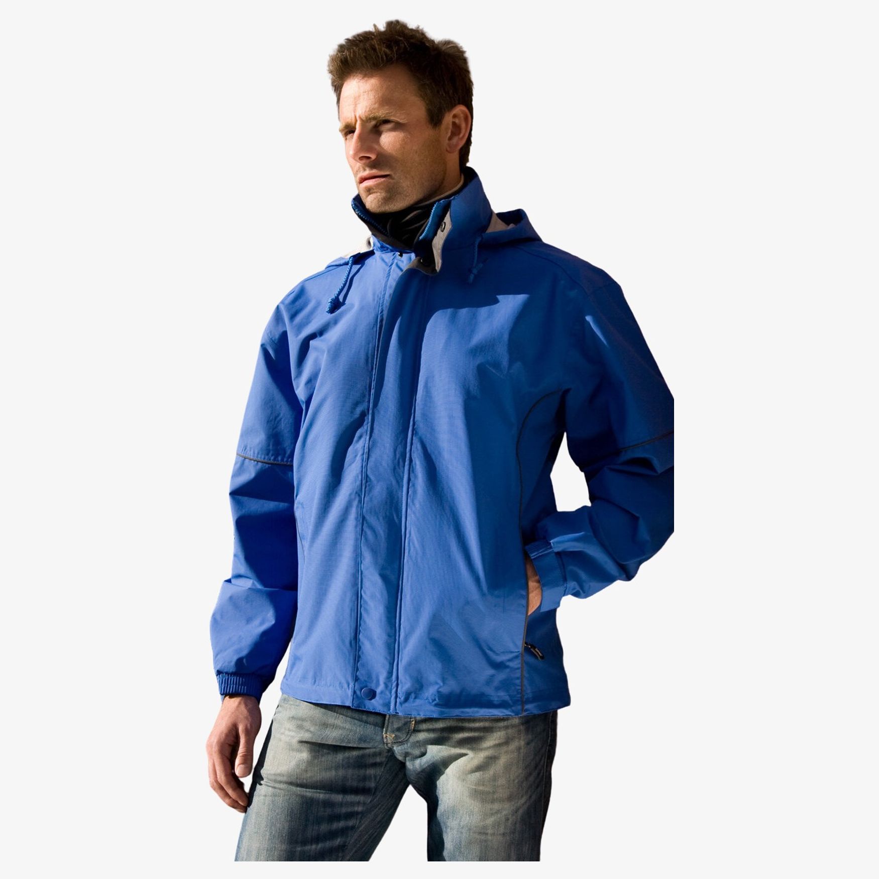 The light technical jacket is designed to provide wind protection with waterproofing of 3000 mm and breathability of 3000 g/24h. Its exterior is hydradri taslan nylon, the interior combines polyester mesh and 190T taffeta on the sleeves. The jacket includes a hood with drawstring, a large zip with inner flap and several zipped pockets.