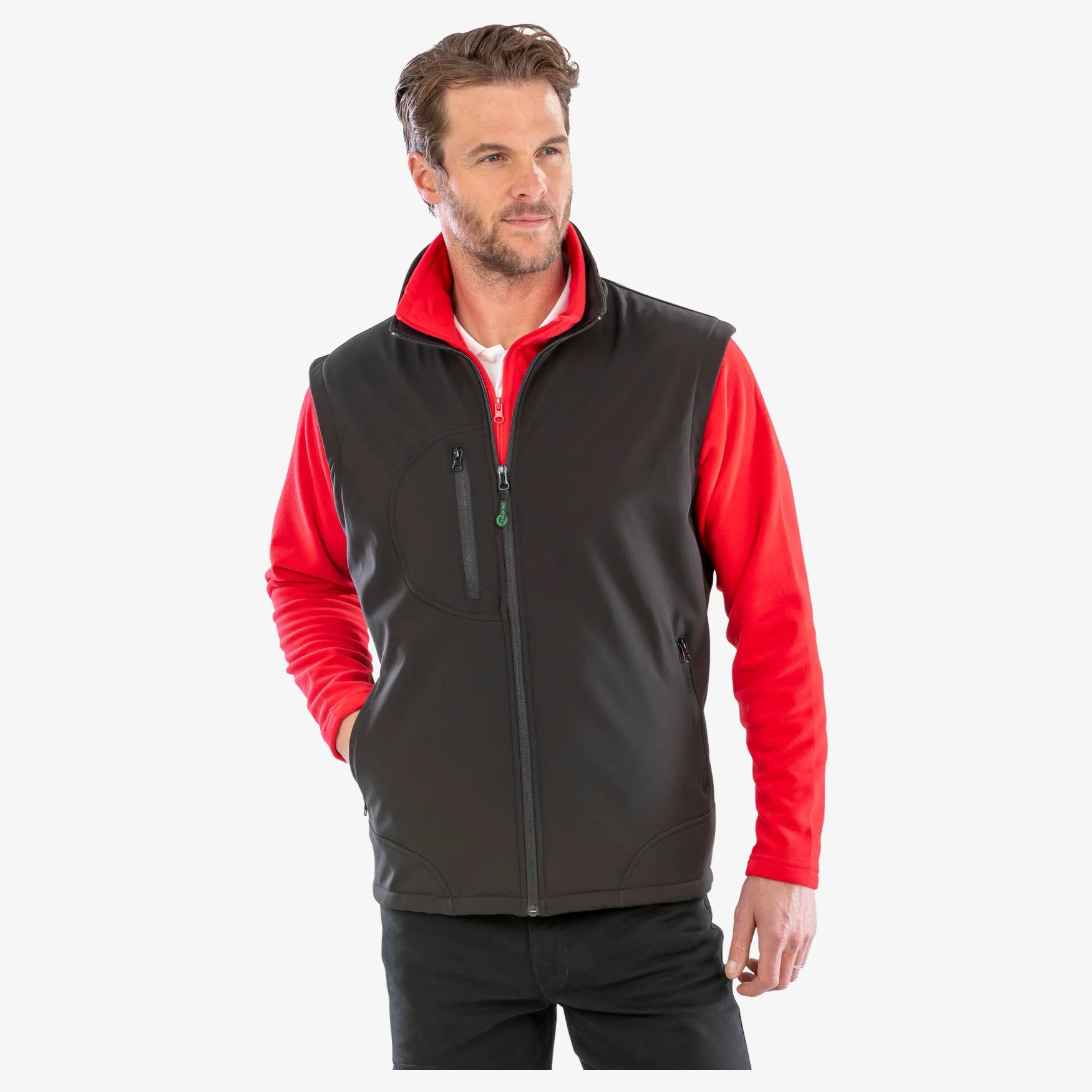 - Zippered chest pocket