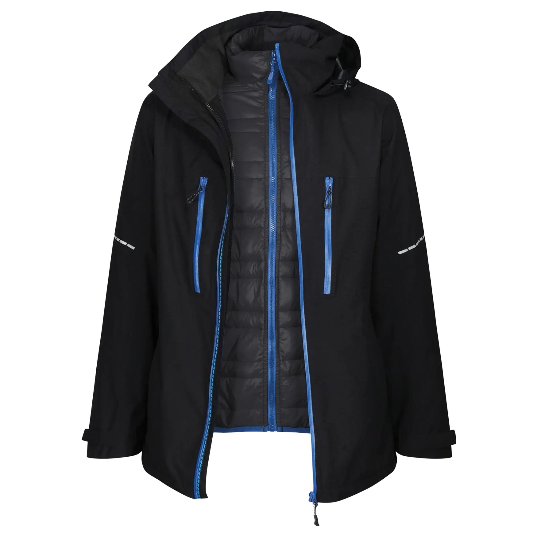 The X pro Evader iii Parka jacket tra156 is a 3-in-1 model designed for outdoor use in variable weather. Its waterproof and breathable outer with taped seams, integrated hood in the collar and removable inner provide suitable protection and modular use.