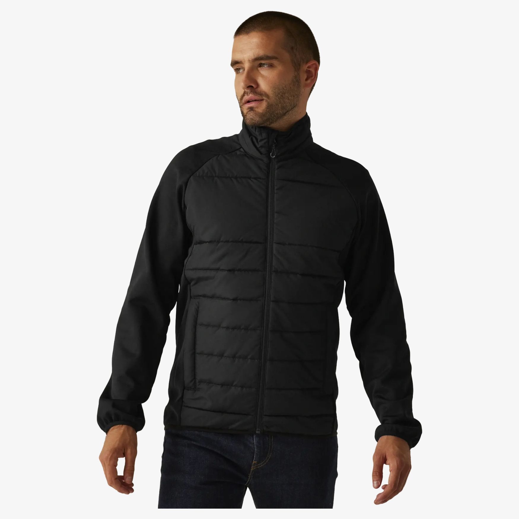 The Essential Hybrid Jacket is a two-material padded jacket designed for everyday use in cool weather. Its construction combines lightweight insulation, a water-repellent finish, and stretch zones on the sleeves and side panels to support movement.