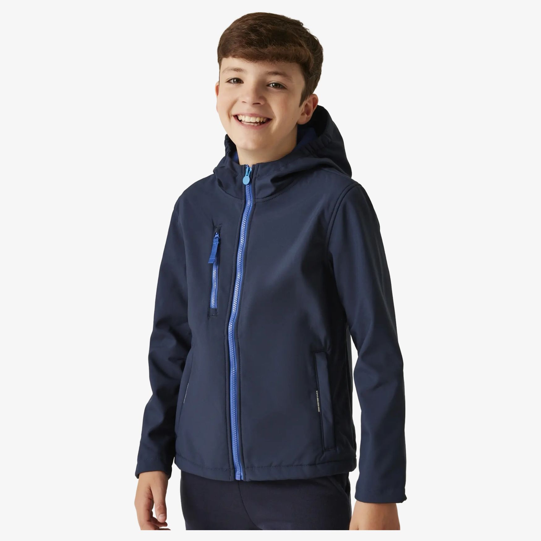 The Ablaze 3-layer softshell is a children's softshell designed for outdoor use with windproof construction, water-repellent finish and breathable membrane. The recycled fleece lining adds extra comfort. The integrated hood, inner storm flap, zipped pockets and reflective details complete the garment.