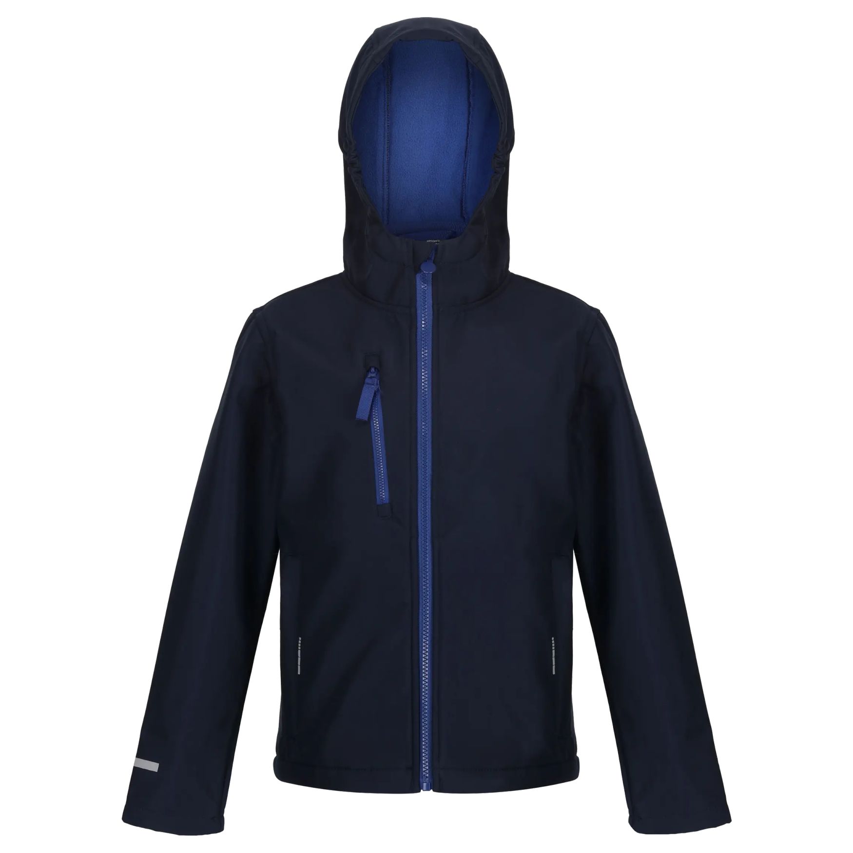 The Ablaze 3-layer softshell is a children's softshell designed for outdoor use with windproof construction, water-repellent finish and breathable membrane. The recycled fleece lining adds extra comfort. The integrated hood, inner storm flap, zipped pockets and reflective details complete the garment.