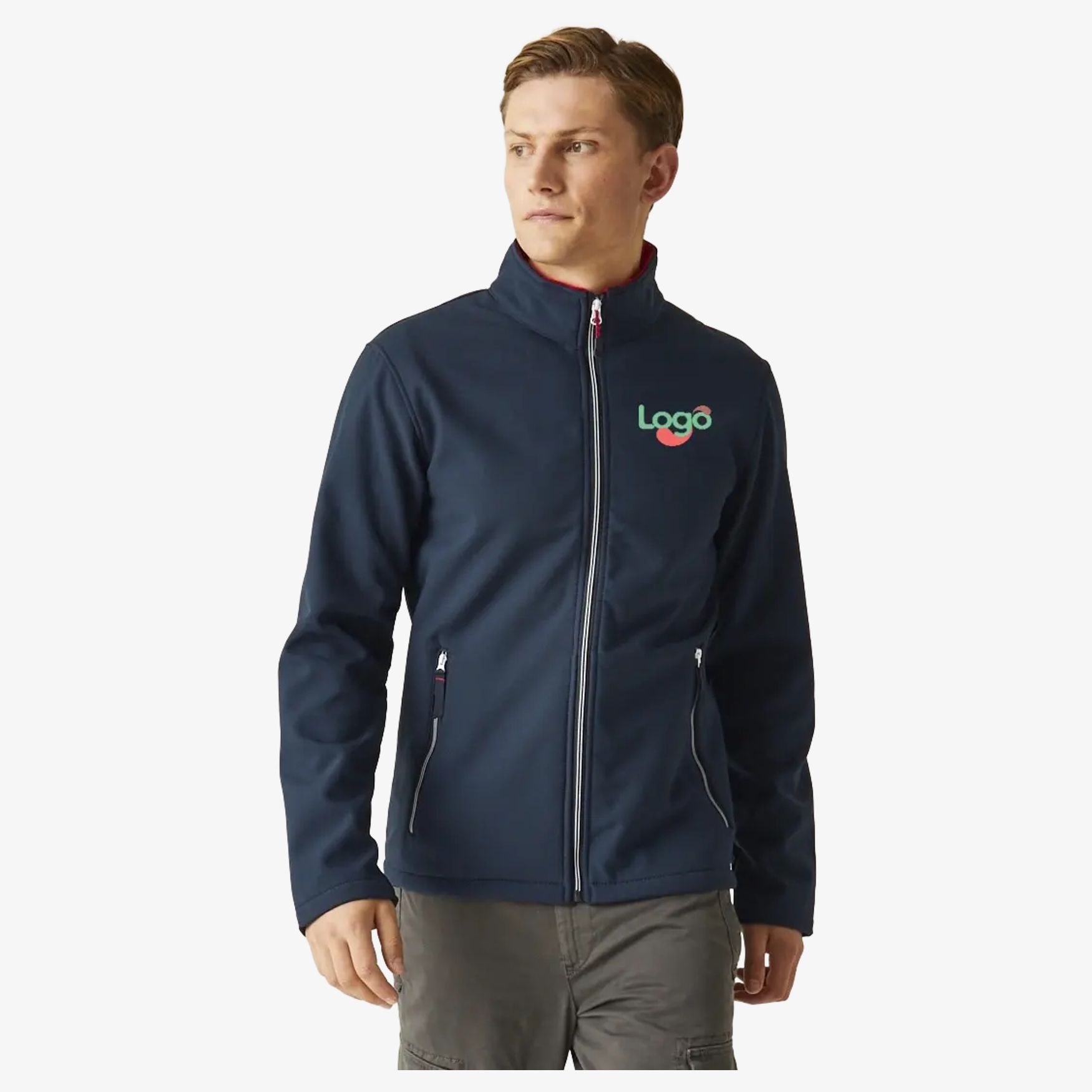 The Ascender Softshell Jacket is a 2-layer softshell jacket designed for everyday outdoor use. Its windproof and waterproof construction, combined with a fleece lining, provides additional protection and comfort suited to changing conditions. It features two zipped pockets and an inner storm flap. Customization is possible depending on the area provided on the garment.