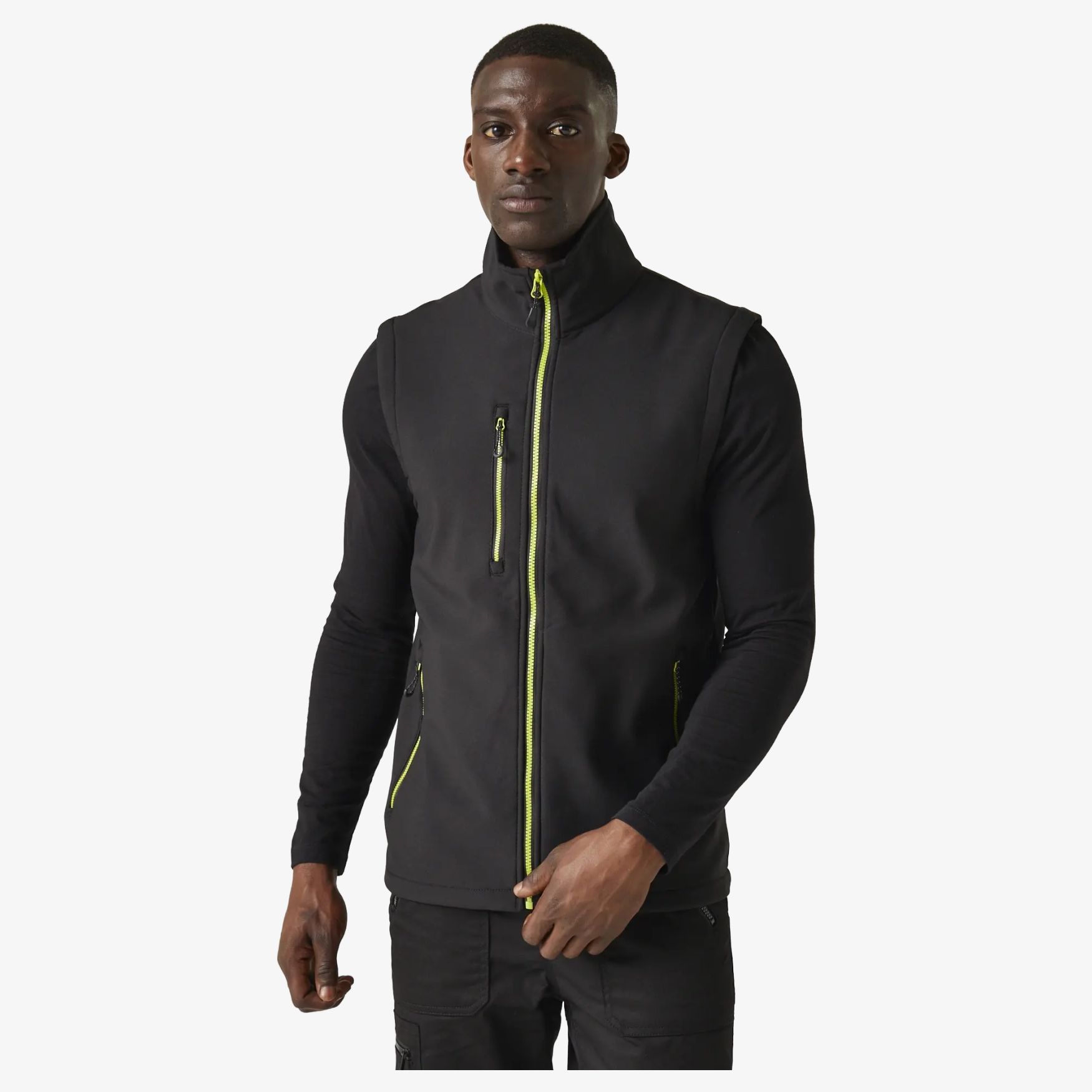 The Navigate Softshell Gilet is a 2-layer softshell bodywarmer gilet in stretch fabric, suitable for regular outdoor use. Its water-repellent and windproof construction, combined with a fleece lining, provides additional thermal comfort. It includes zipped front pockets and a zipped chest pocket with inner zip guard.