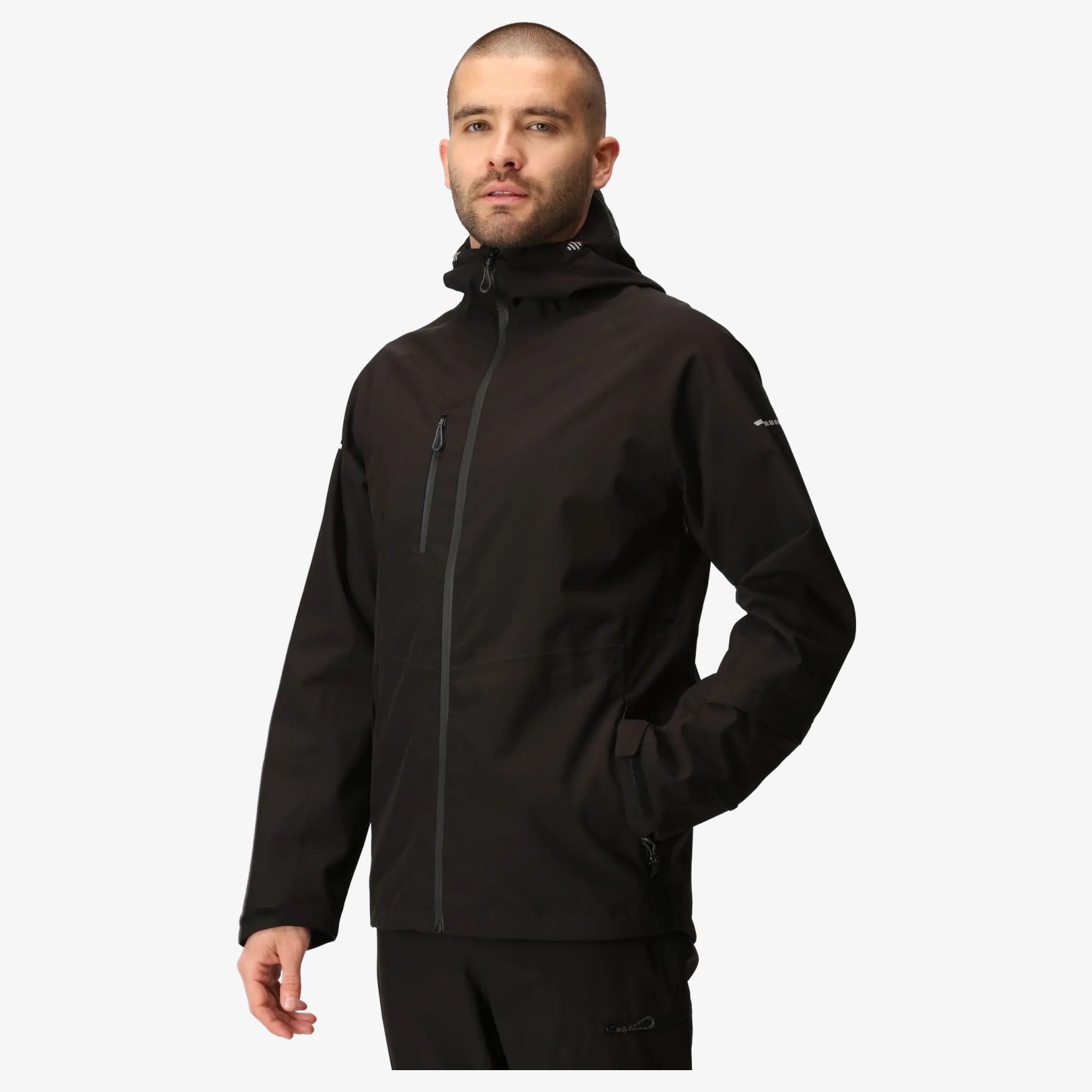 - Technical hood and articulated sleeves