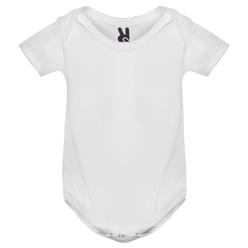 Short-sleeved baby body, designed in single jersey knit for optimal comfort. It features a round neck and ribbed bottom 1x1, as well as snap buttons at the crotch to facilitate dressing. The cross opening at the shoulder allows for easy putting on of the body. The label is detachable to avoid irritations. This body is composed of 96% combed cotton and 4% elastane, offering a soft touch and good support. Possibility to customize this item with your logo or visual for effective communication.