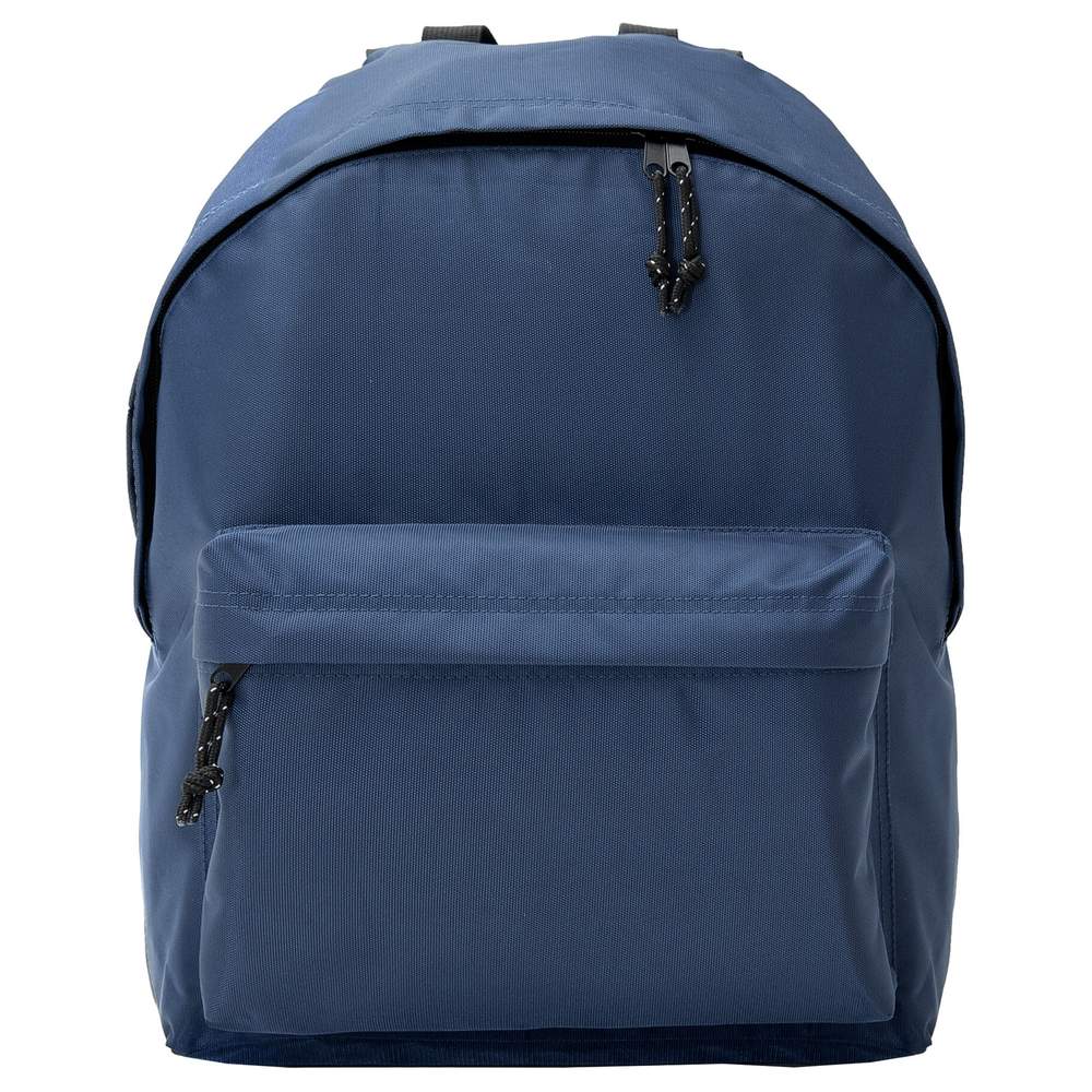 Basic backpack with zip and flap. Reinforced double shoulder strap and special handle. Large front pocket with zip and flap closure. Black details. Detachable tag. Composition: 100% polyester. One size: 30 x 40 x 18 cm. 20 L. This backpack is ideal for customization by embroidery or printing your logo.
