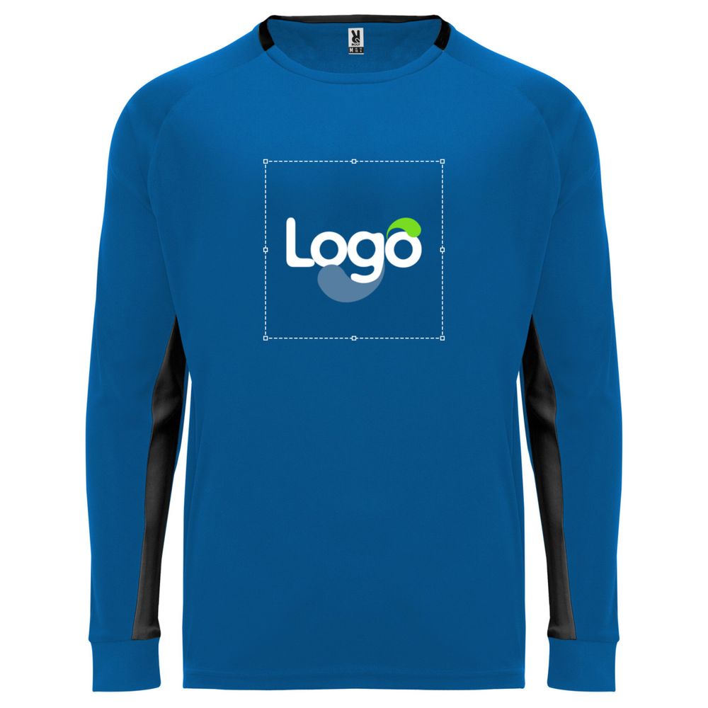 Unisex long sleeve goalkeeper T-Shirt, designed in 100% polyester for optimal comfort and great resistance. It is equipped with padded elbows for increased protection during impacts. The contrasting panels inside the sleeves add a touch of style, while the contrasting detail at the back of the collar and on the cuffs reinforce the overall aesthetics. This T-Shirt is ideal for goalkeepers of all levels, offering both performance and comfort. It is also customizable, allowing you to add your logo, colors or any other graphic element for a unique visual identity