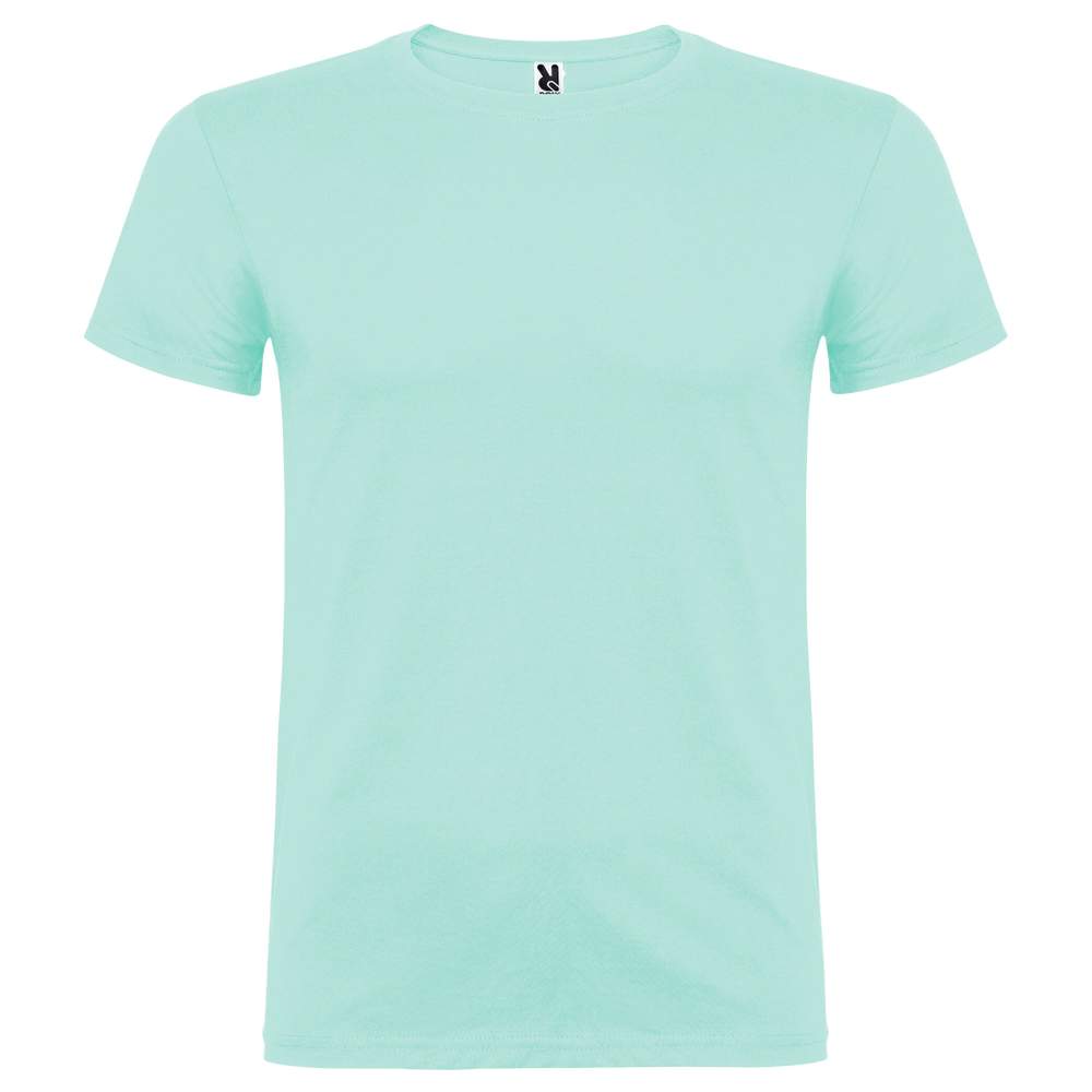 T-shirt short sleeves. Round neck double thickness with elastane and shoulder to shoulder clean band. Tubular cut in adult sizes and with side seams in child sizes. Detachable label. Composition: 100% cotton, single jersey knit (except heather gray color: 85% cotton, 15% viscose)