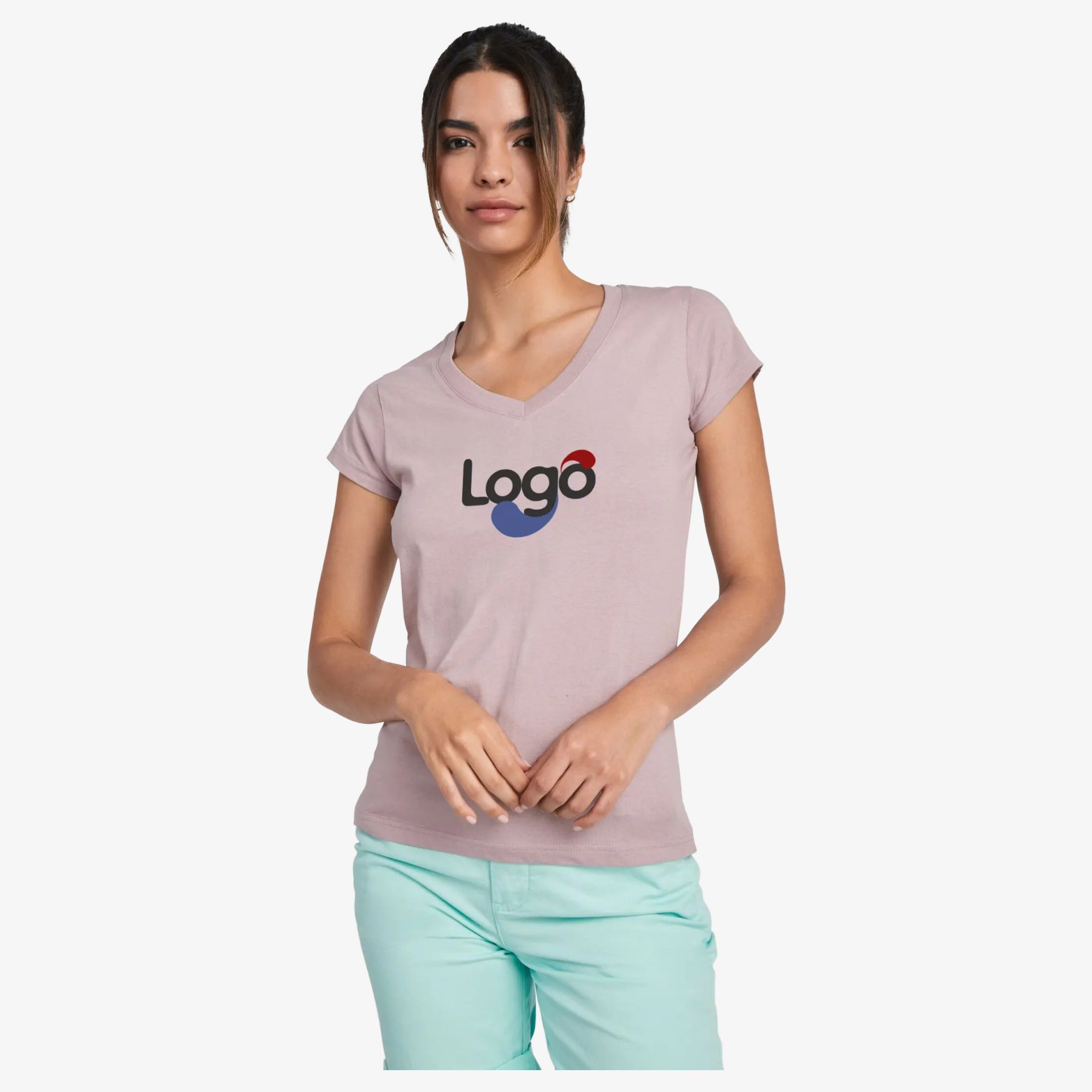 This Victoria ROLY women's t-shirt offers a flattering fitted cut combined with an elegant V-neck and side seams for optimal fit. Made from soft and breathable cotton, it ensures exceptional comfort throughout the day. The detachable label adds extra comfort. This t-shirt is perfect to be customized with your logo or visual, offering an ideal solution to promote your brand or create unique outfits.
