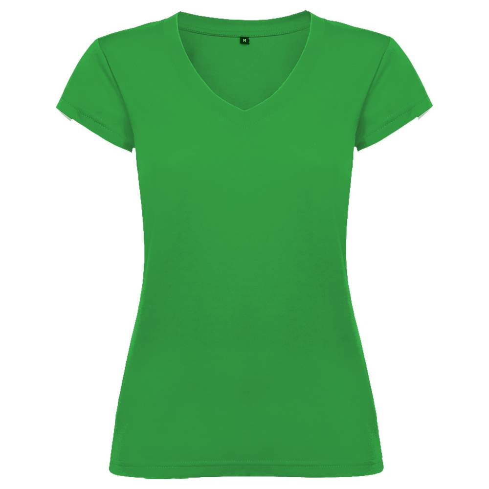 This women's T-shirt is made of cotton, offering optimal daily comfort. It features a V-neck and short sleeves, as well as a flattering fitted cut with side seams. The tag is detachable for added comfort. This garment is ideal for various casual occasions.