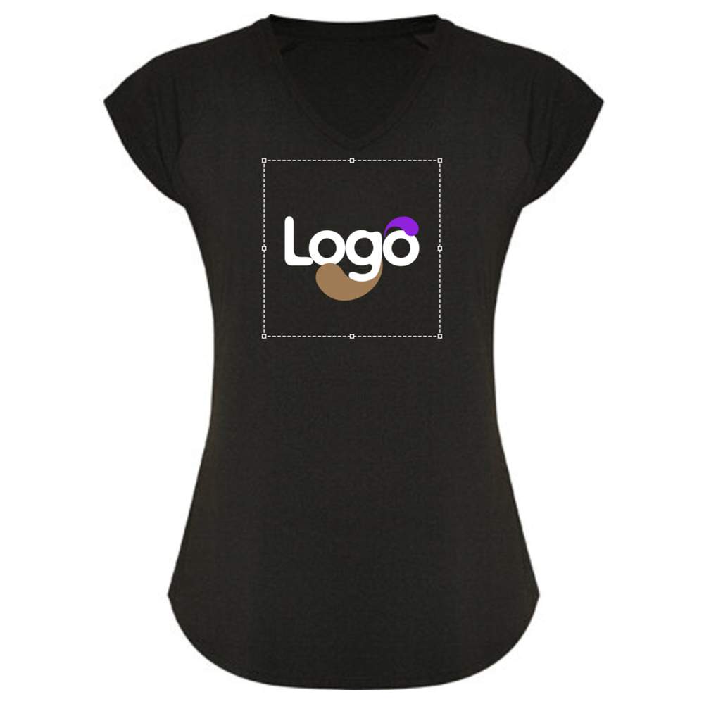 Multisport technical t-shirt for women, short-sleeved raglan style. V-neck. Polyester fabric with a cotton feel. Fitted cut. Breathable model with easy drying. Soft touch. Detachable label. Technical fabric. Composition: 92% polyester / 8% elastane.