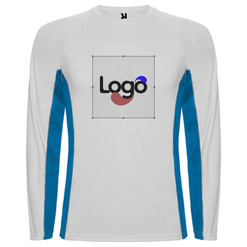 T-shirt combining two polyester fabrics. Long sleeves with raglan style. Main fabric bird´s eye and side panels and inner sleeves in micro-perforated fabric. Round neck with reinforced clean finish band. Comfortable and adaptable T-shirt. Detachable label. Technical fabric. Special for sublimation. Breathable model. Possibility of customization with embroidery or logo printing.