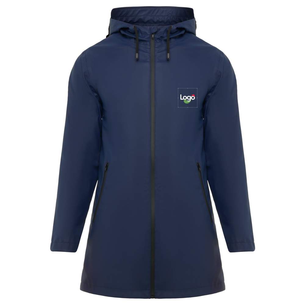 This waterproof parka for women offers optimal protection against the elements. Designed in polyester, it features a fixed hood with visor and thermo-welded seams for maximum watertightness. The zipped closures and contrasting black details give it a modern and elegant look. It has two side zip pockets to store your personal belongings and a rear hem with opening for greater freedom of movement. This waterproof model is also equipped with a detachable label for easy marking. Possibility of customization by embroidery to display your logo or your visual.