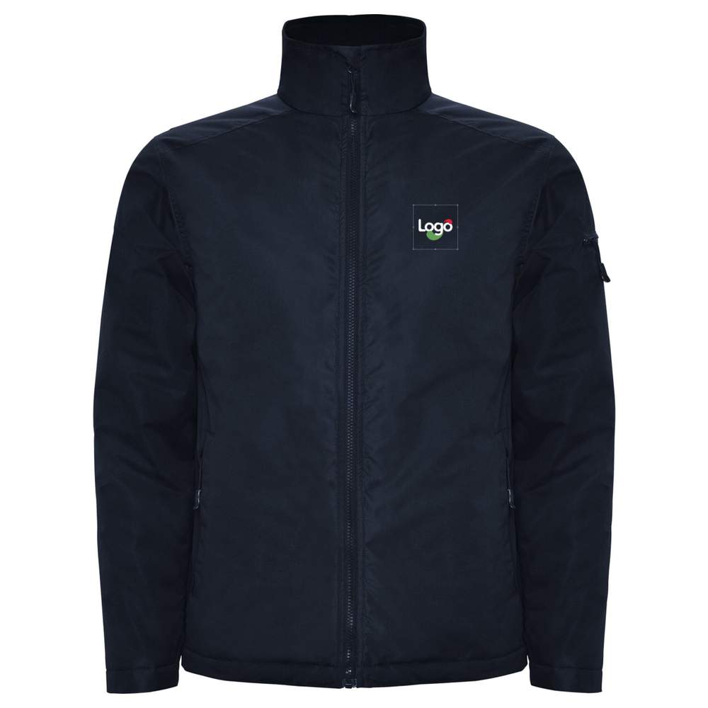 Quilted jacket in highly resistant polyester fabric. High collar with 2x2 ribbed interior. Front zipper with tone-on-tone protector. Two front pockets with dual function including an open pocket and another with zip. Zip pocket with flap on the left sleeve. Elastic stoppers inside the bottom. Waterproof and windproof model. Easy interior access for screen printing or embroidery. Detachable tag. This model allows for easy customization with embroidery or by adding your logo. Composition: 100% waterproof polyester.