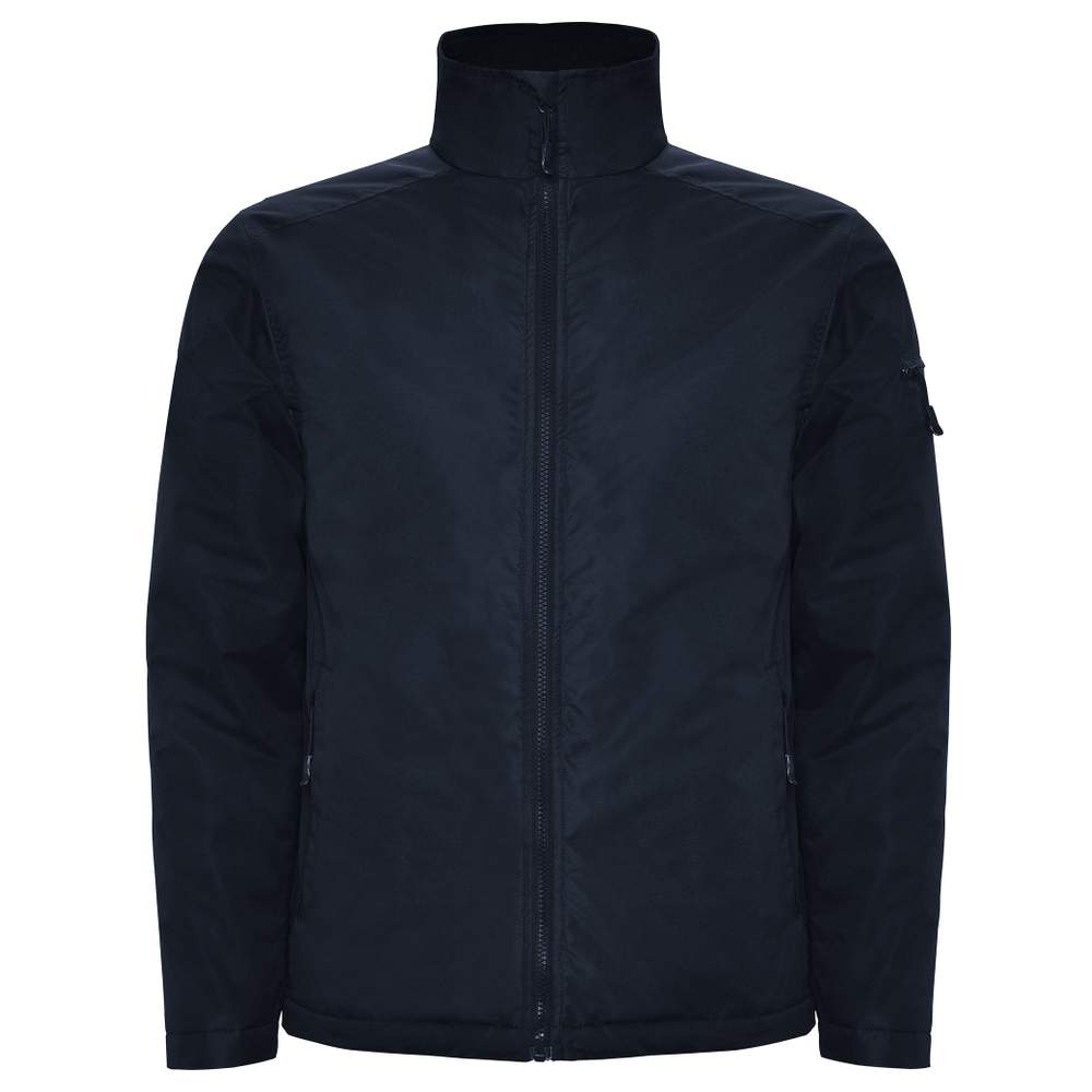 Quilted jacket made of resistant polyester fabric. It features a high collar with a 2x2 ribbed interior and a tone-on-tone zipper, including a chin protector. It has two front double-function pockets, one open and one zipped, as well as a zipped pocket with a flap on the left sleeve. Elasticated stoppers are present inside the hem. This model is waterproof and windproof, facilitating access for screen printing or embroidery with a detachable label.