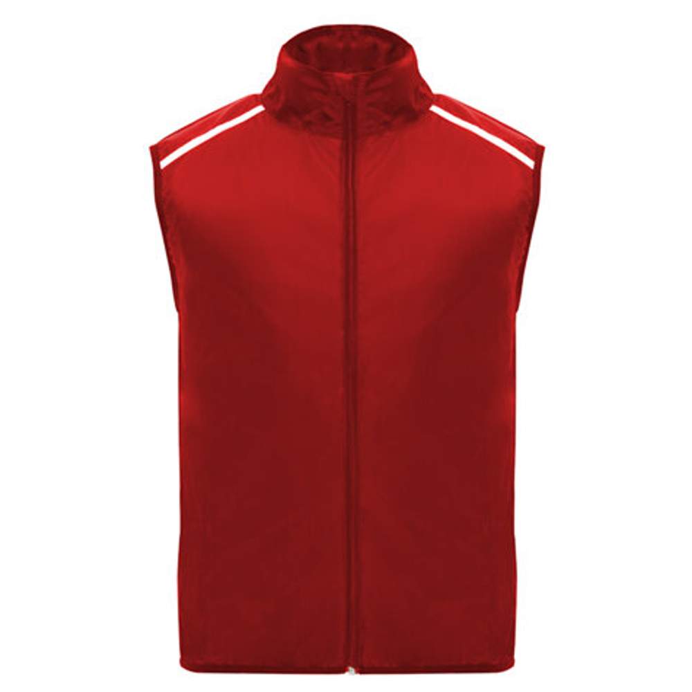 Light technical vest designed for running and other sports activities. It is equipped with a ton-on-ton zip with chin protection, hems and sleeves with elastic trim, and a back made of microperforated fabric for better ventilation. Reflective details are present on the top, front and back for increased visibility. An elastic pocket allows you to store the vest and wear it on the wrist. The label is detachable. This model offers wind protection and optimal breathability. It is possible to customize this vest in embroidery to identify it with your brand or team.