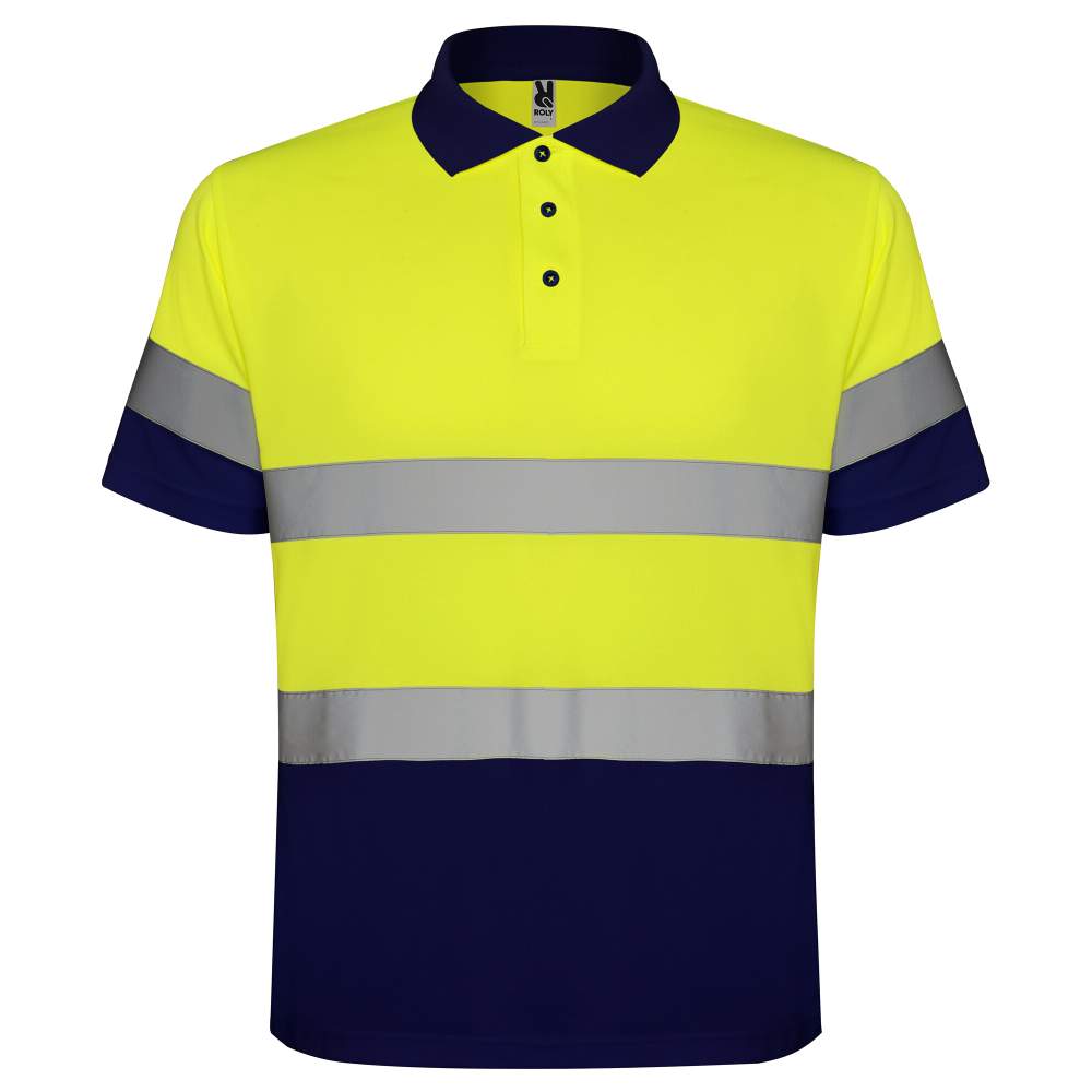 High visibility short sleeve technical polo. Button placket with 3 buttons. Ribbed collar and cuffs. Two horizontal reflective strips on the chest and sleeves. Anti-snag fabric. CE certified according to EN ISO 13688:2013/A1:2021, EN ISO 20471:2013/A1:2017 standards. Class I: 55221 - 55223 - 52221 - 23221. Class II: 221. Detachable labels.