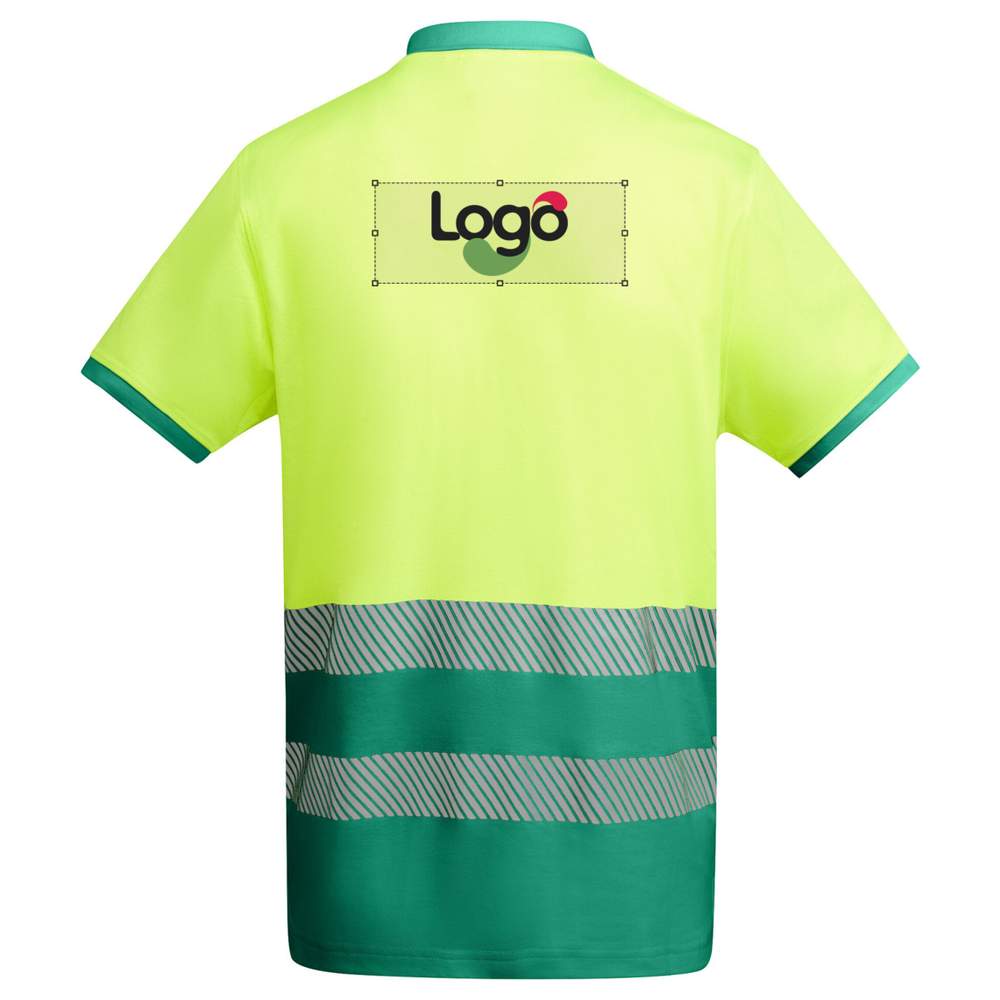 Short-sleeved high visibility technical polo, ideal for improving safety and comfort. Contrasting collar and sleeves in ribbed fabric for a modern look. Two segmented high visibility bands on the chest for better recognition. Contrasting button placket with three buttons for easy wearing. Comfortable blended fabric of polyester and cotton for optimal breathability. Possibility to customize with your logo by embroidery or print for a unique brand image. CE compliance according to standards EN ISO 13688:2013/A1:2021 and EN ISO 20471:2013/A1:2017. Class I: 55221 - 55223 - 52221 - 23221. Class II: 221 - 223.
