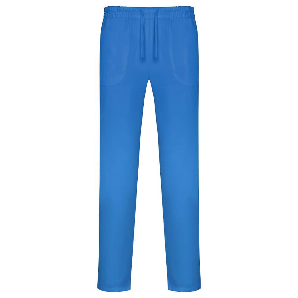 Unisex straight-cut long pants designed to meet the needs of professionals. This model features an adjustable elastic waistband for optimal comfort, as well as practical French pockets to carry essentials. The label is easily detachable for added convenience. Suitable for laboratories, healthcare, aesthetics, food service and cleaning sectors.