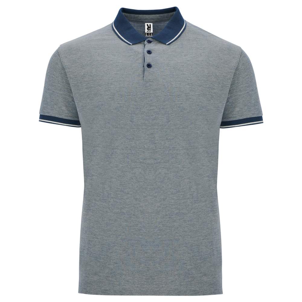 Short sleeves Chiné Polo, designed in Piqué cotton for everyday comfort. It features a solid color collar with a 1x1 rib and contrasting decorative details. The placket includes three matching buttons. The sleeve edges are ribbed with contrasting details. The bottom of the polo has a reinforced side opening and a decorative band. The back yoke is slightly longer than the front of the polo. It is equipped with a detachable label.